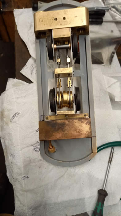 Top hat valves and square carriers. The hole in the front bracket is for the exhausts, which go directly into the smokebox from underneath the cylinder block.