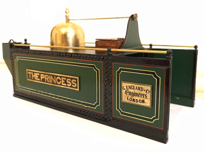 The Princess arrived from England's works in London without a dome. It was not a success because, lacking a dome for the regulator it primed ejecting water out of the chimney. Nor could they raise much steam pressure. A dome was fitted at Boston lodge under the supervision of William Hollinrake, one of England's employees, an engineer who stayed on to serve the FR for many years as Locomotive Superintendent.