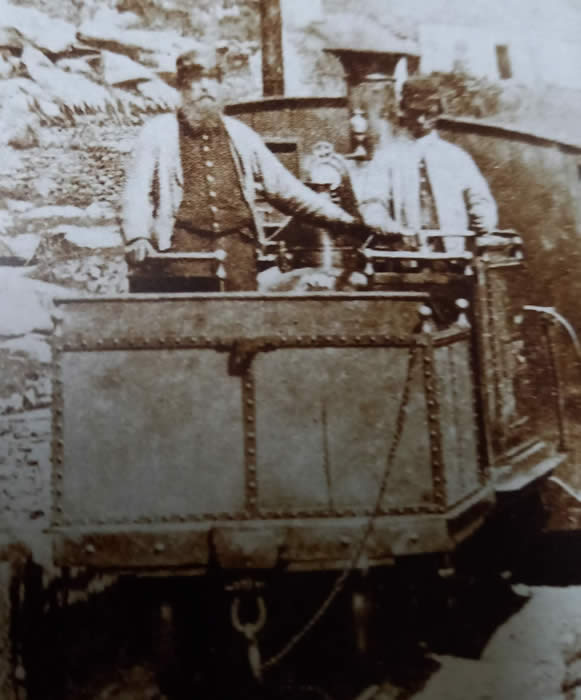 A rear view of the tender showing the chain by which the stoker uncoupled the slate wagons without having to dismount.