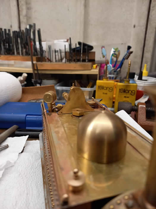 The rear curved cab backs have been fitted along with regulator and steam tee which houses a very small safety valve acquired from Kennions.