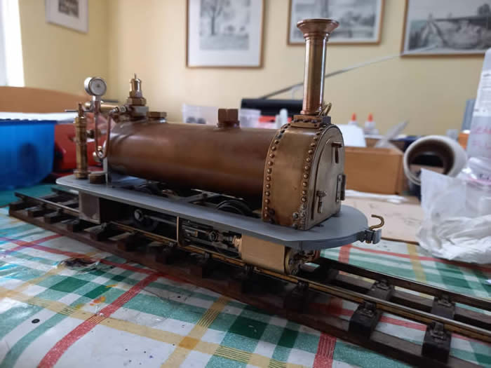 The footplate is scale length but the smoke box is taller than scale because of the boiler which was fitted as low as possible [ without hitting the wheels ]. This is a very small engine!