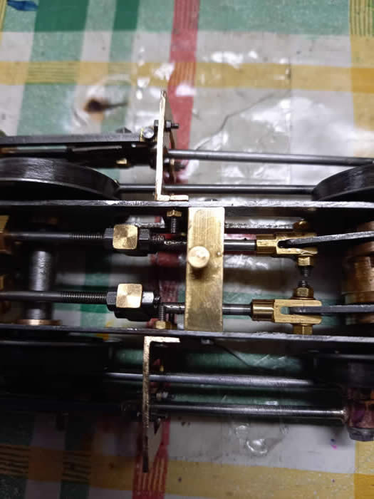 The eccentric rods pass through the centre bearer and then " step" up to the valve rods. This is a very effective slip eccentric with a single stop collar.