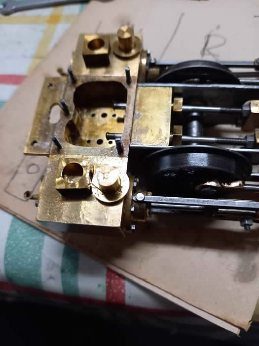 The steam chest has a rear block onto which the chassis bolts and a bracket on the front [ both silver soldered ] onto which the footplate attaches.