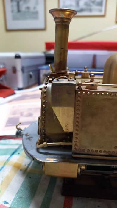 The chimney was turned in one piece and soldered to the plinth then bolted with 12ba steel bolts to the smokebox