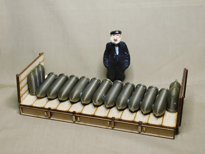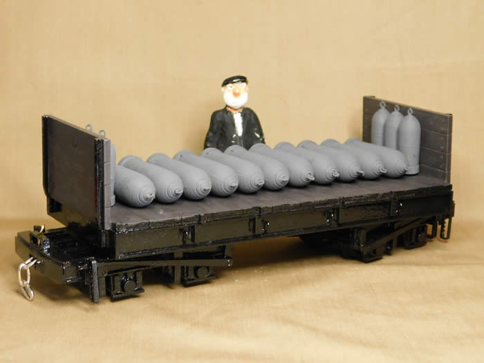 A prototypical load of RAF munitions, 3d printed for me by Roy Plum, was added to capture the character of the MOD NGF wagons as used at RAF Chilmark in the late 1980s. The flat bed structure is surprisingly heavy but I nonetheless added a small amount of weight under the frame to aid stability. The finished model is robust and runs well with the Binnie disc wheels supplied with the kit. Whether you want to model MOD NGF wagons, or any of the Ffestiniog MOD wagons, this Resurgam Rolling Stock kit is worth a look.