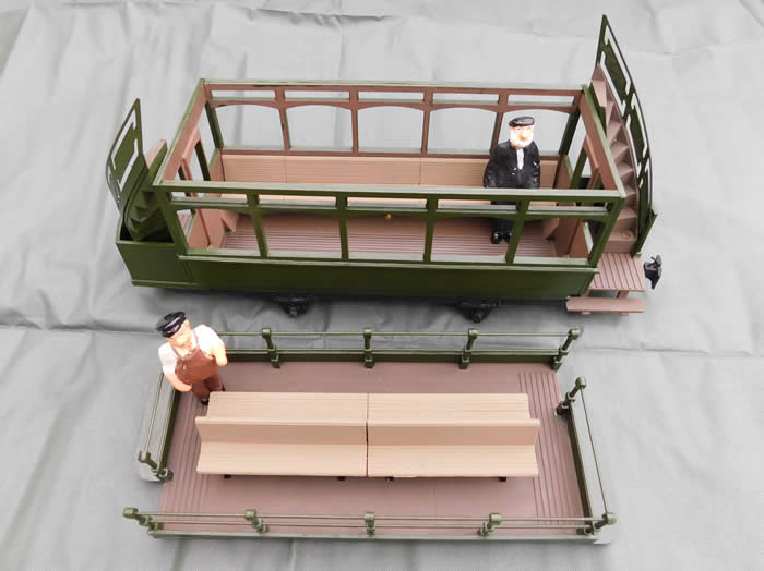 Despite an extended chimney, the open upper deck of the trailer exposed the passengers to smoke and cinders. Many companies boxed in the upper deck and others adopted larger vehicles mounted on bogies.
