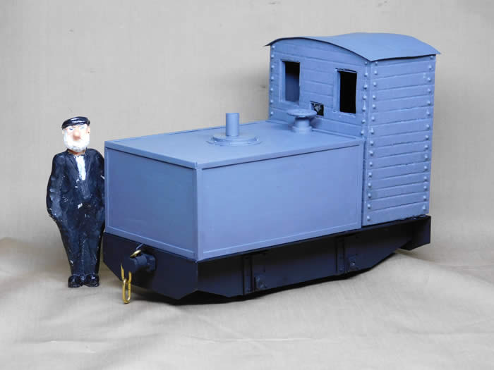A water tank was built from plasticard and, like the frames, was reinforced with wood at the ends and centre so as to withstand any rough handling when placing the model on the track. The water tank on the prototype had a central hatch with a filler pipe but no internal baffles, resulting a rather exciting ride. The handle to operate the original brakes on the donor diesel running gear passed through the water tank, so an opening in the cab front was required for the guard to reach through.