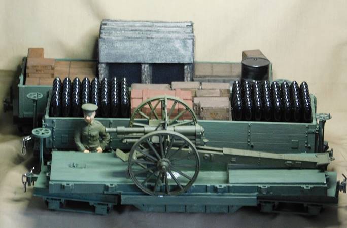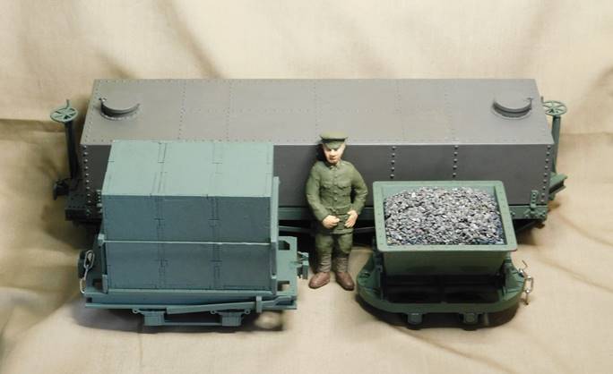 2-WDLR wagons for heavier track (front to rear): a Red Star Class F wagon modified as a field gun carrier, a Swift 16 Class D wagon and a Red Star Class E wagon