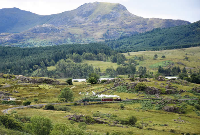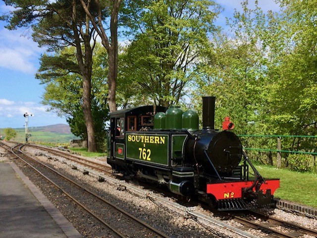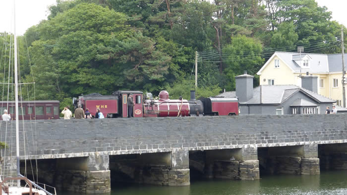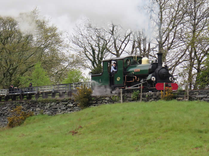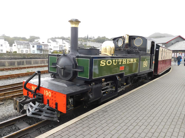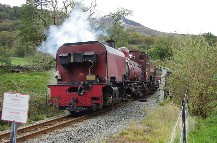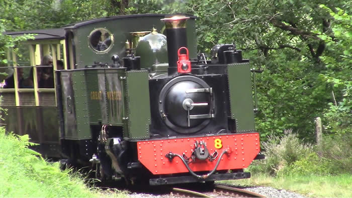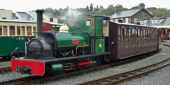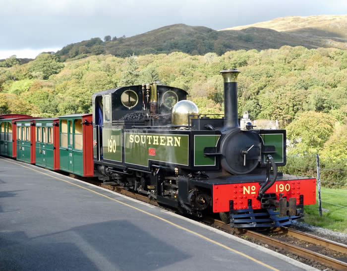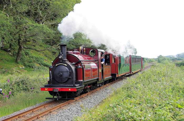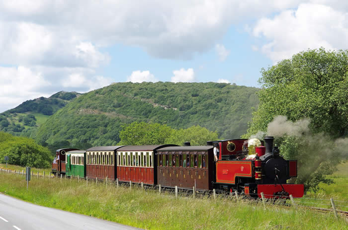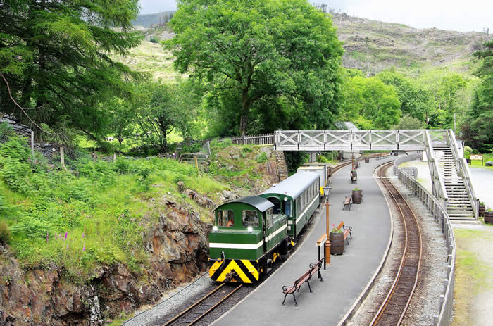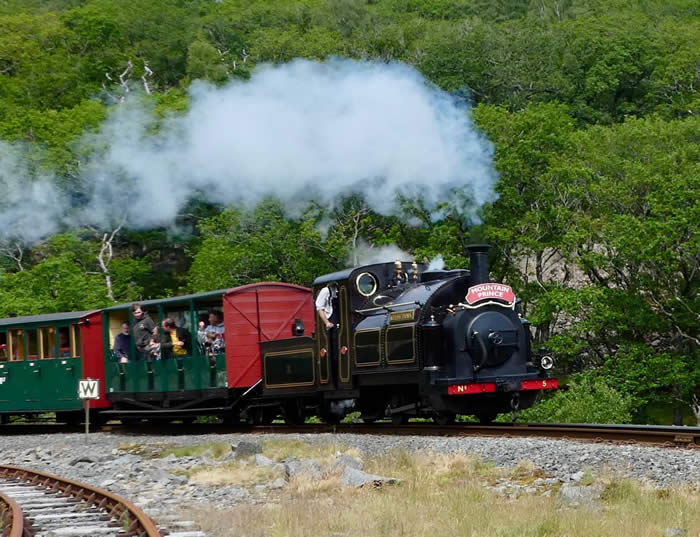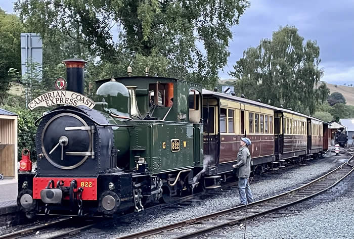 " James Spooner " entering Dduallt station with Victorian carriages :