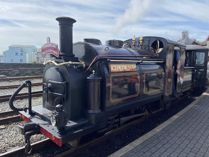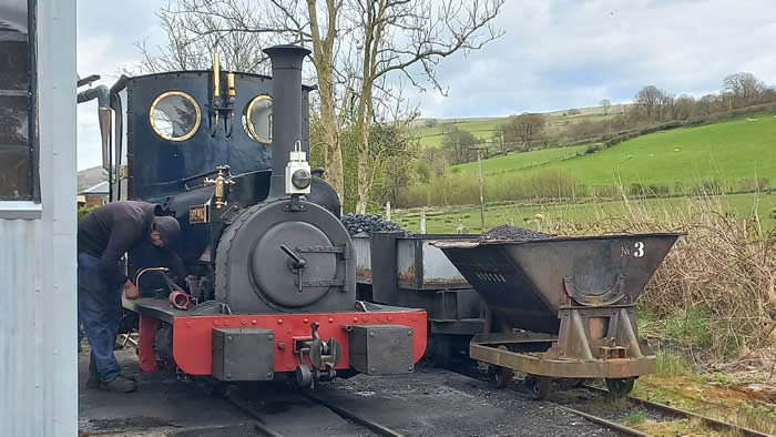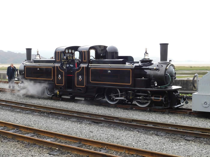 Merddin Emrys : FR first day of 2022 operation at Minffordd : on trial run after fitting of bottom-end power bogie: Andy Wilkinson