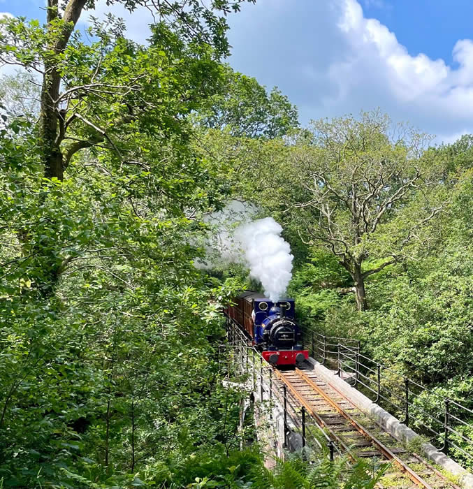 " Talyllyn" on Dolgoch Viaduct with splendid blue livery by Chris Cooper