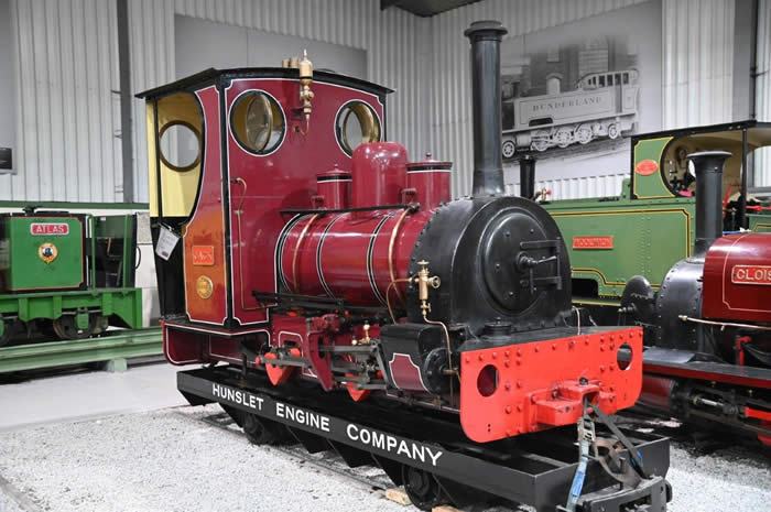 "Carnegie" 21ft long on 18" track. Articulated 0-4+4-0DM double jackshaft. Built by Hunslet in 1954 for Woolwich Arsenal. Restored and residing at Statfold Barn 2022 : Alan Poxon