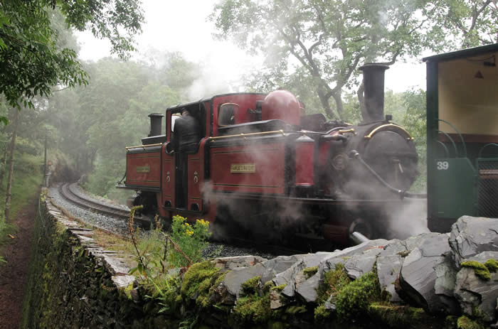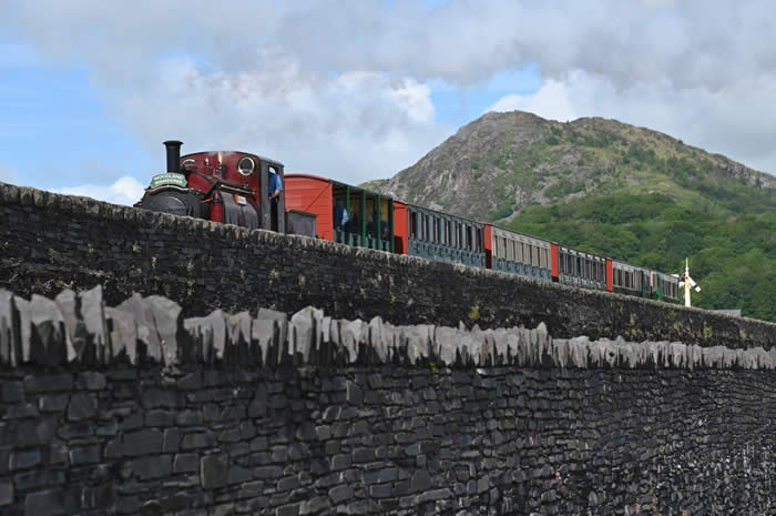 Blanche hauling the slate wagons up Gwyndy Bank prior to gravity train : Andy Wilkinson