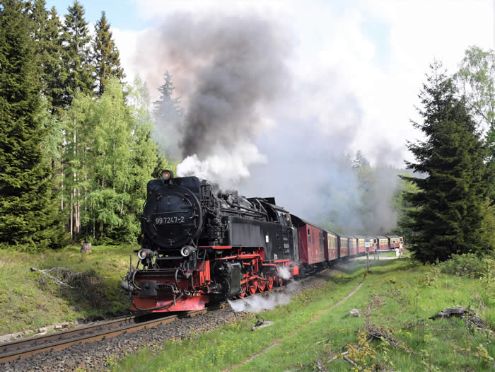 "Harlech Castle" on a PWay train through Tan-y-bwlch woods :
