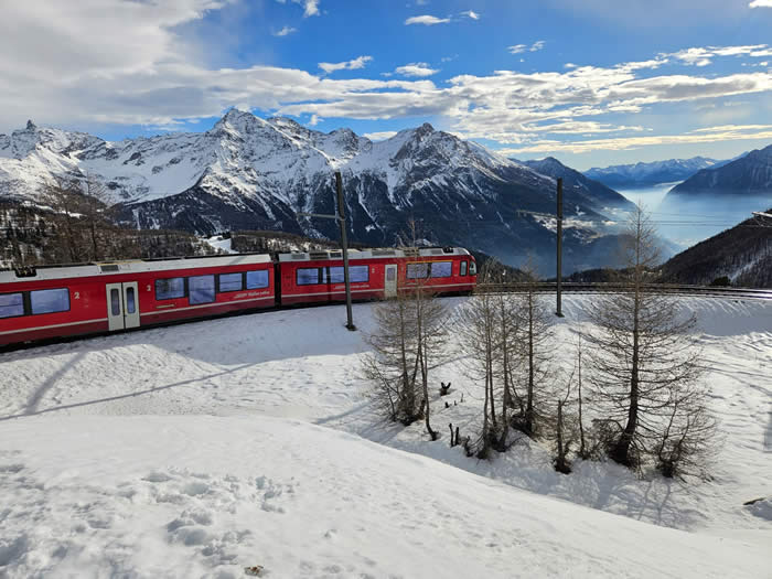 Rhatische Bahn EMU 3531 leaving Alp Grum [ 6860 ft asl ] for Tirano