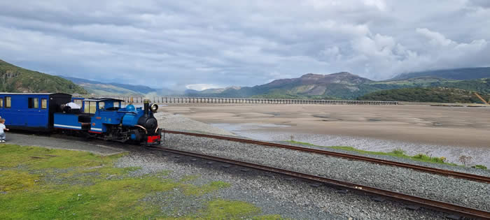 Panoramic view of Barmouth railway bridge with Fairbourne's "Sherpa" : Trev Oughton