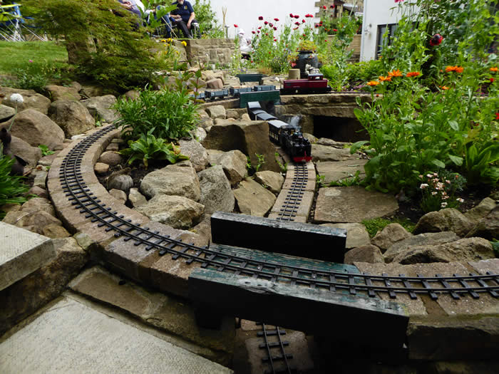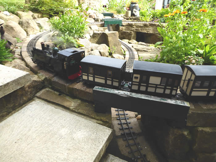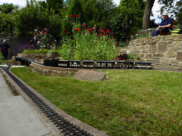 Despite the gradient the layout is reasonably favourable to manuals, provided you have a fairly well behaved and well understood one. As the gradients are long and consistent, provided you understand your loco well, it is possible to use without having to adjust ever few yards. With judicious gas control I can get my Accucraft Decauville to plod around without needing adjustment. It's a little slow on the climb, and maybe a little quick of the descent, but it is possible to find that sweet spot that is not alarming. But if you do have one with a tendency to run away, you will need to be quick on your feet, in which case, radio or geared manual is a good option.