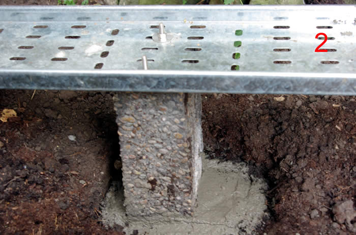 The hole for the pier is dug and lined with hard-core, the pier is then suspended on a RFS tray in the correct position and correct height. The hole is back filled with concrete and well tamped and a final check on position is made.
