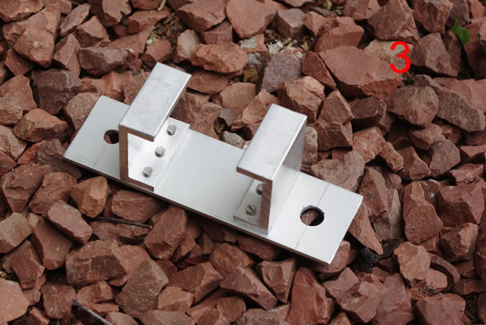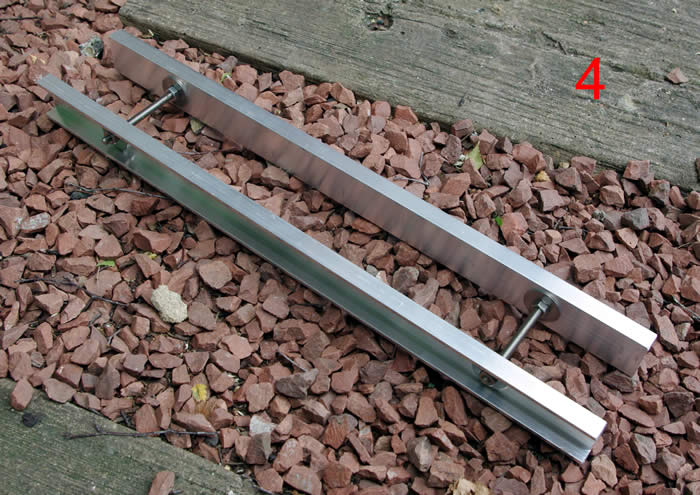 This shows clearly how the spans are held by the support bracket. A nut and washer sit below the support bracket and a cut down penny washer sits on top of the span ends and held by a nut. Adjusting the nuts gives final level and super elevation on the curves.