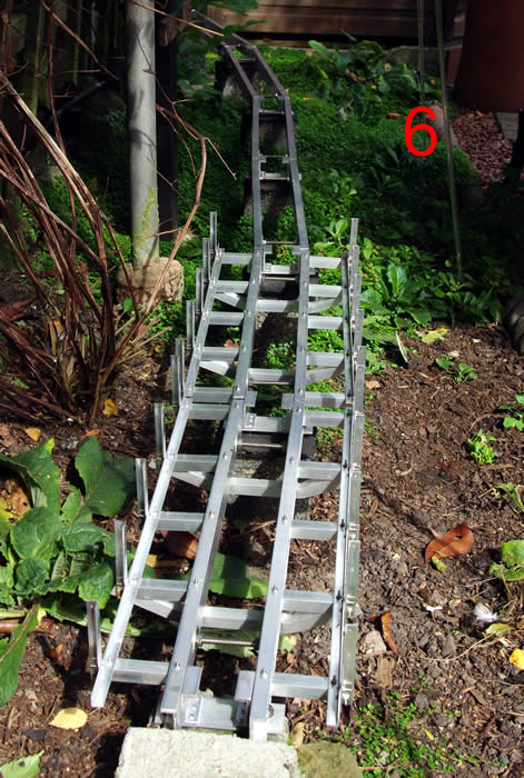 Here spans one and two are completed with wing brackets and handrail stanchions, the other spans are in situ.