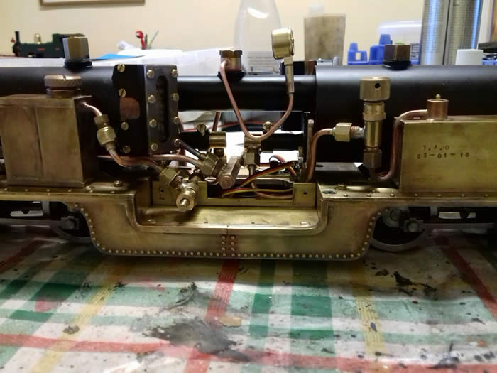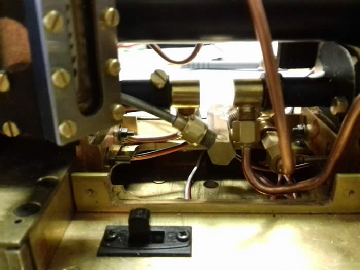 Regulator side - the regulator is mounted at floor level to be hidden behind the cab side plate - the servo is to the left of the lubricator
