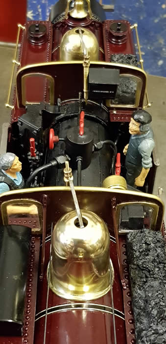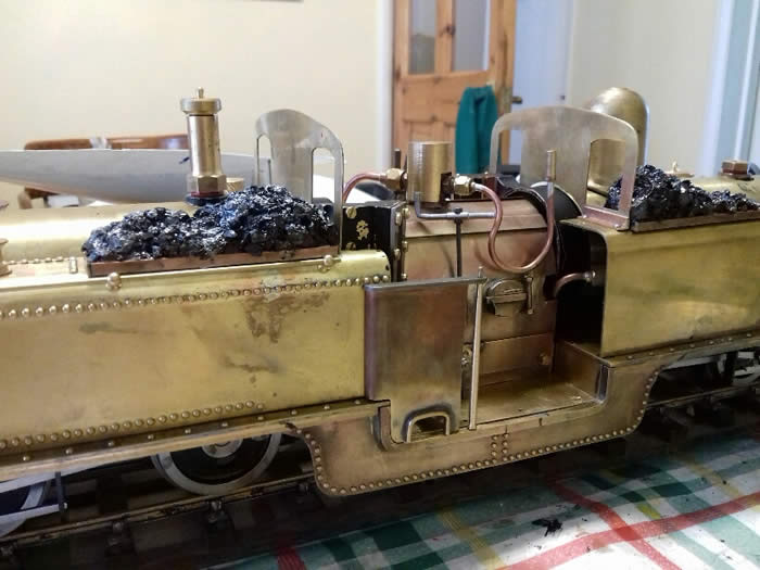 Coal loads cover the tops of the gas valves so that the open centre section is available for detailing including here firehole doors catches and hinges, handbrake for the stoker. In 1872 the driver controlled the water injection.
