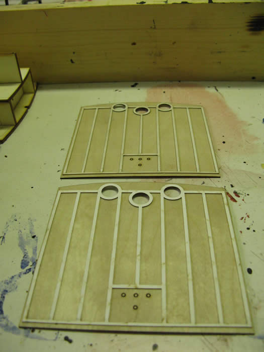 The ventilators are fitted to the “portholes” These card fittings are very delicate and fit from the inside. Great detail!