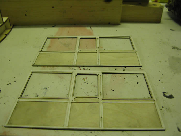 The outer card overlays are glued to the front of the side panel to form the detail. So far so good. Give everything a coat of Phoenix grey primer.