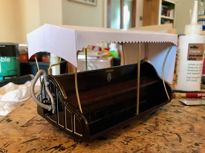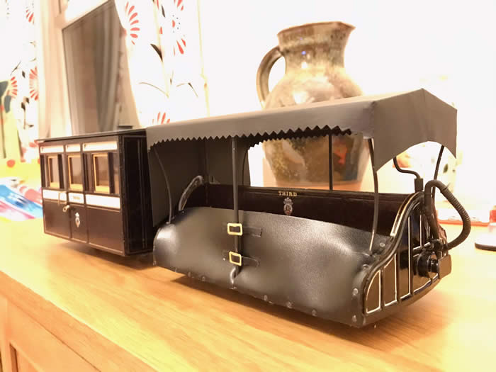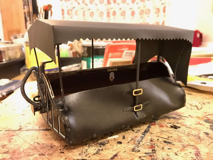 I decided it was finally time to make the canopy and aprons but took a while to come up with the method until I visited the FR last October for the Bygones Weekend and managed to photograph the carriage whilst on a tour of Boston Lodge.