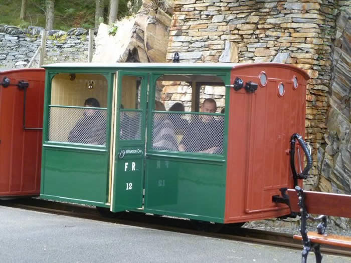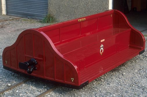 The knifeboard opens were built by Brown Marshalls of Birmingham in 1864 and, along with their enclosed counterparts were the earliest FR passenger stock. To satisfy the act allowing passengers to be carried on such a small gauge, it was stipulated that the carriages had to be as close to the ground as possible, to prevent them from tipping over. That is why the seating was designed as benching lengthways along the carriage looking out to the side. This influenced the proportions of all the original subsequent 4 wheel and bogie passenger stock built for the railway to satisfy the need for a low centre of gravity, with bogie vehicles designed with the bogies set up inside the frames.