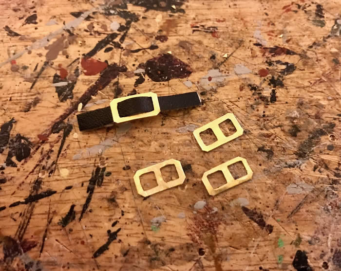 The aprons were made from some black leatherette type fabric, tacked on with 00 trackpins, with some buckles fashioned from brass sheet.
