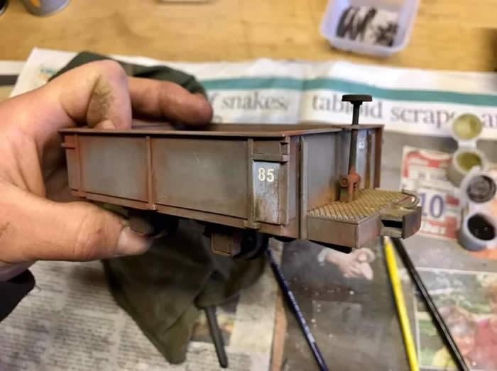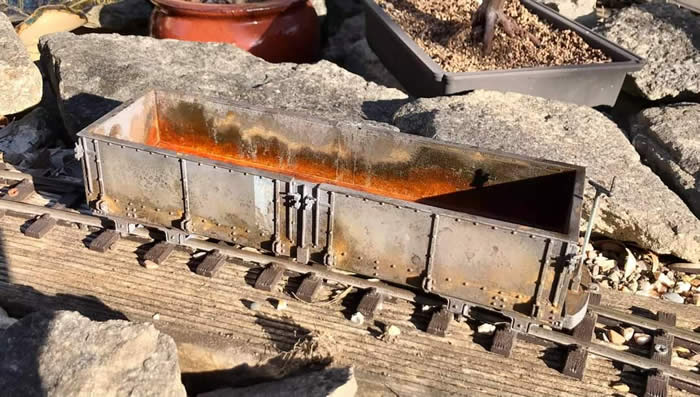 As you can imagine, these wagons are very beaten up in real life, and having read Paul Howard's article on using weathering powders, I wanted to challenge myself to make these as dirty as I could. Another friend put me onto ‘iron flour’ as a method of modelling real rust too and I went ahead and experimented with both techniques. This is available to purchase from Simon at Model Earth designs (not on website but just email him).