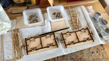 The body and detail parts were sprayed up with Halfords enamel black and the wooden inserts stained before assembly to give a crisp finish. Then more Humbrol matt varnish.