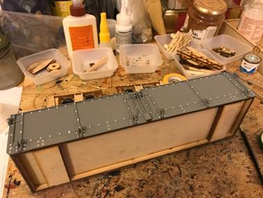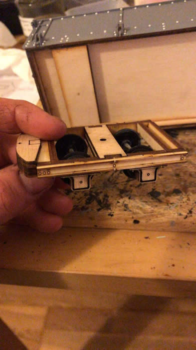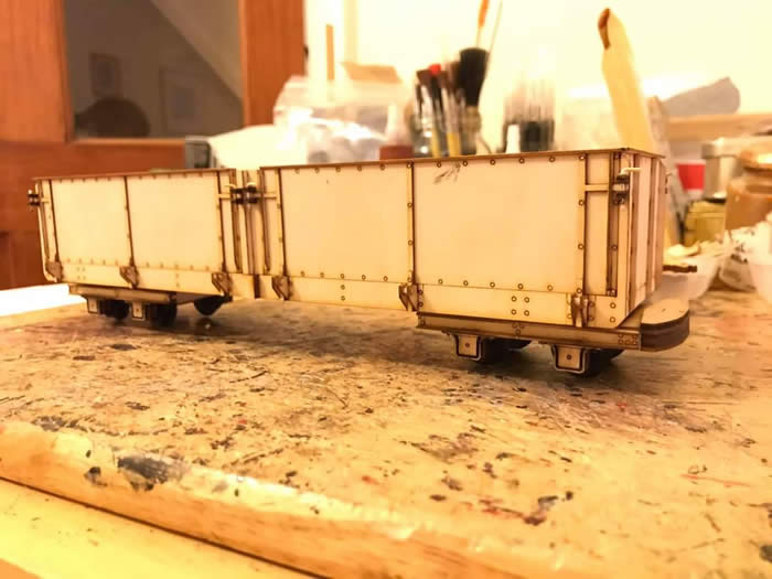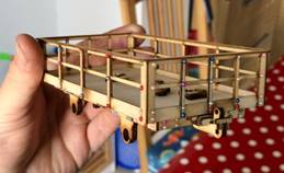Next came the bogie wagons, more rivets this time and a more complicated construction with the bogies to build and drop side detail. These are know as the ‘Locoals’ on the FR as for years they were used to move coal from Boston Lodge to Port and could be seen by the Port water tower when coaling engines between turns. We will have all seen them and never given them a second glance!