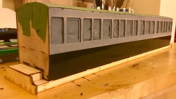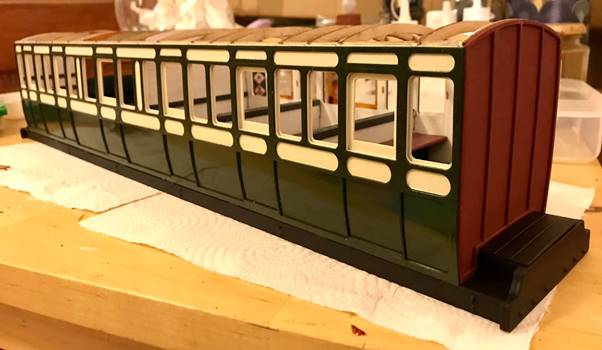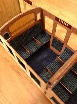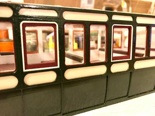 The chassis was then be painted and attached to the underside of the body assembly. Now the carriage was taking shape the work on the interior could be seen to be worthwhile when viewed through the windows openings.