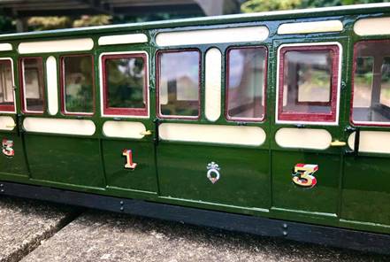 The pre lined beading overlays and ends were then applied to the sides of the carriage body to complete the effect, along with glazing, decals and all the door furniture. The chassis was built and lined and then attached to the body then the whole vehicle gloss varnished.