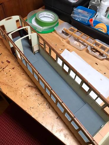 Since finishing 19 (and having a lie down in a darkened room!) the Resurgam odyssey has continued with 11 & 12 and replica Ashbury carriage 21, shown in the pictures below. All are built using the same method, interior then exterior, but with one blessed difference…..no bowsides!