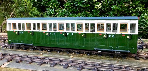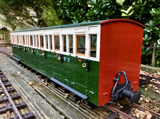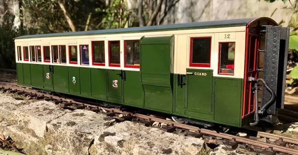 11 and 12 were originally built as bogie brake vans, converted to have passenger compartments and matchboard sides in the 1930’s and then changed again in the early preservation era. 11 was made into the FR’s first, first class observation carriage and 12 was lengthened by the addition of an extra compartment. They are often run together brake ends joined by the FR’s first corridor connection. Groundbreaking!