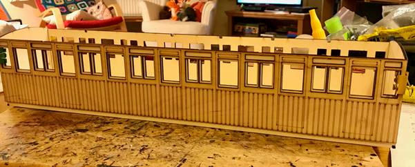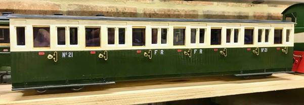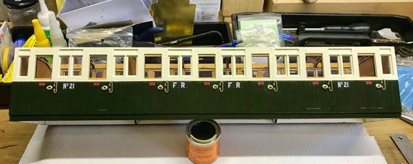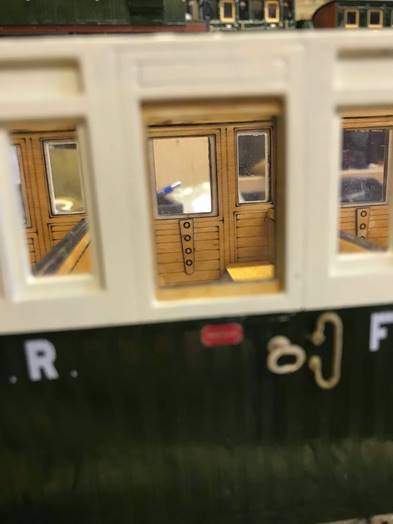 The kit has produced a good representation of the replica 21, despite a major difference which I only realised after I had gone past the point of no return! If you look at the small windows either side of the doors on the real carriage (both original and replica) they are the same depth as the door windows. Not so with the kit. I have to admit I found this error very disappointing.