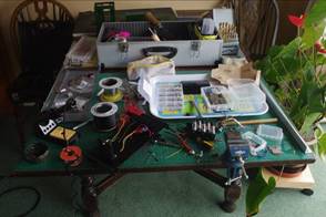 Reassembly of the chassis begins on the workbench which is sometimes known as a Dining