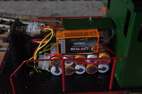 Under the bonnet - A 12V battery pack and Chuffed 2bits Mtronics speed controller with a DSMX receiver from ebay so that I could use my existing Spektrum transmitter: