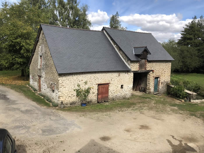 Le Moulin de Chene Cutte ( the mill of the oak cutter) is situated outside a small village. The barn (pre 1900) is built out of stone from the surrounding quarry. The water from the trout river fills the mill race under the mill and the mill pond next to the barn. The old machinery and water driven generator is still in situ and protrudes up through their proposed lounge!!