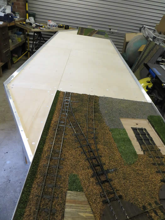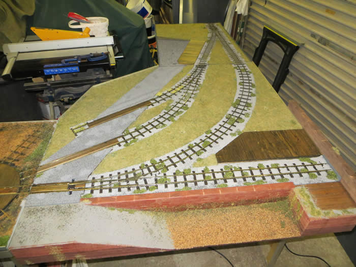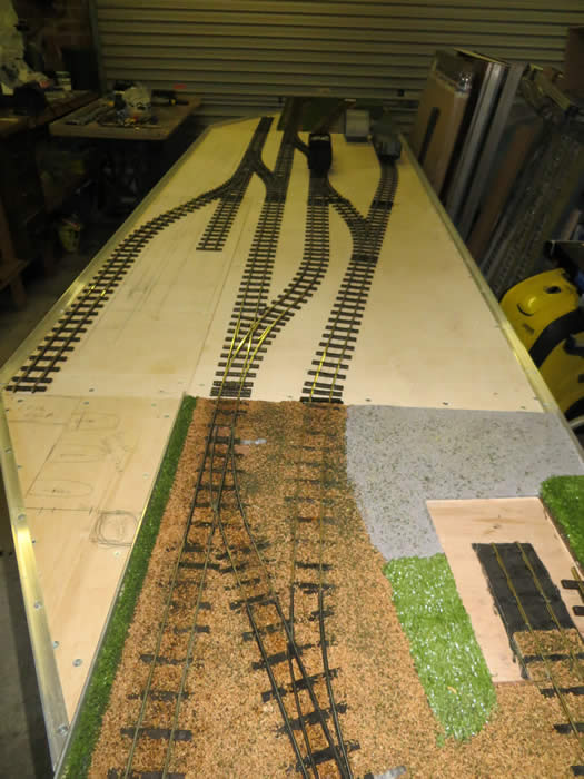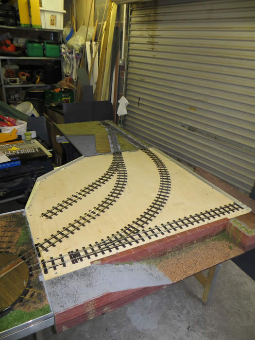 PHOTO 8 The new board for Saes-Y-Parc is now complete, and joined to the adjacent boards. The siding will lead to the Kulort off-loading shed. The new board will also add another passing loop onto Saed-Y-Parc station.