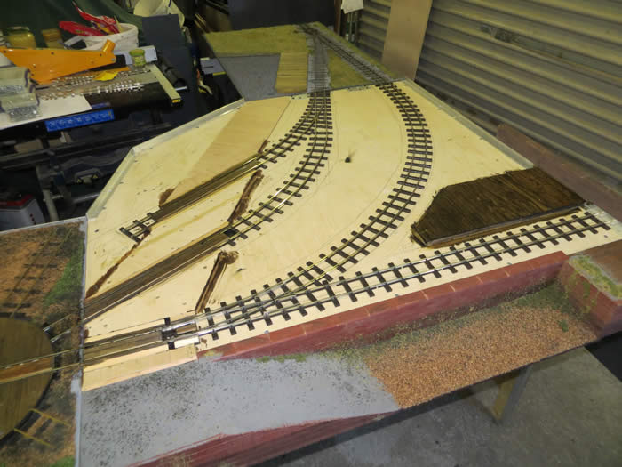 The track has been laid, creating a passing loop, a steam-up siding on the operating side and a short siding alongside the dock.
