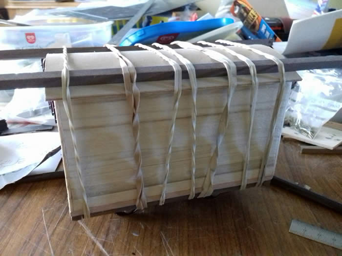 Sides and ends planked: roof braces fitted