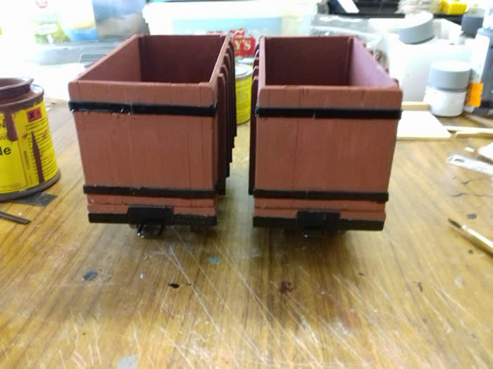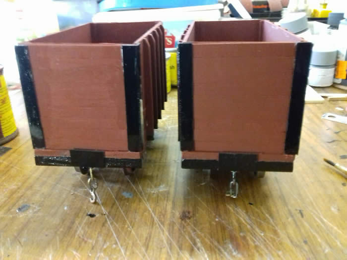 One coat of grey primer and one coat of red oxide. Black for solebars.