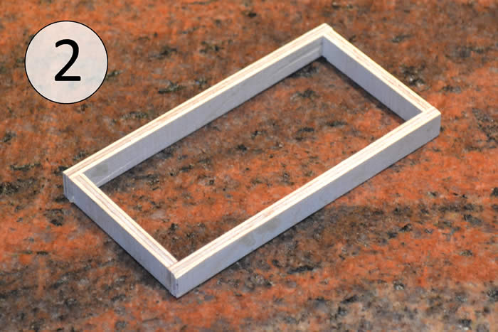 My normal materials for scratch building rolling stock are ply and strip wood. For ply I mainly use 1/16” with detail added either with 1/32” and 1/64” ply or strip wood. If I need any thicker section I laminate two or more pieces together. However for this model I decided to rummage through all those ‘come in useful one day’ bits in my scrap box. So the frame (photo 2) is cut from a piece of 4mm ply.