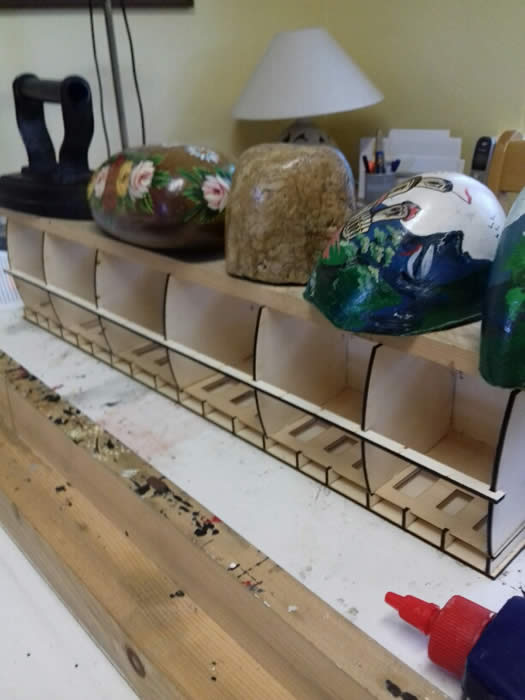 Then paint the overlays and back into the jig to glue them to the sides