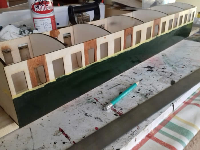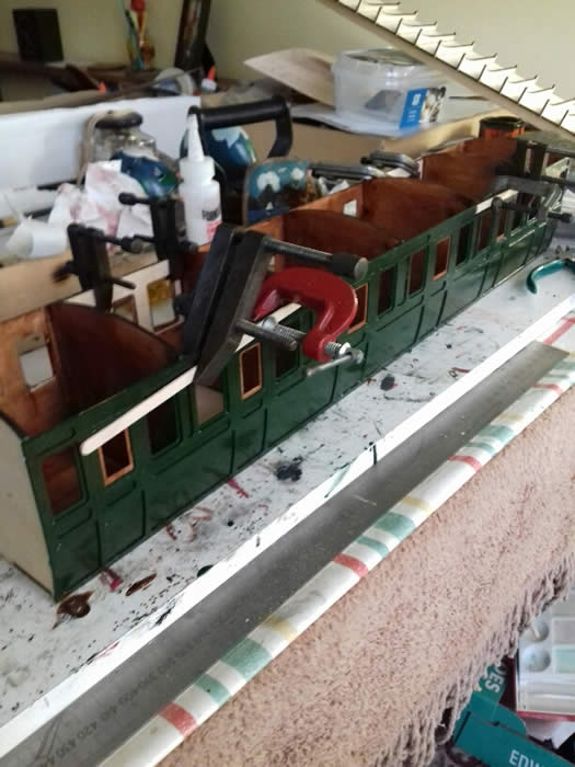 The biggest weakness is the roof. The kit supplied parts are too flimsy to hold the roof in a straight line. I eventually decided to glue down the roof permanently after "aralditing" in the bogie retaining bolts.