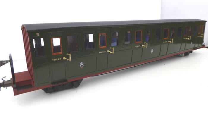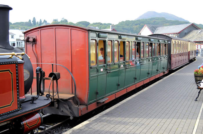 Coaches 19 and 20 were supplied to the FR in 1876 and 1879 respectively. They had wrought iron frames and the bogies were provided by Boston Lodge. Original compartments were Third/Second/First/First second/Third with 44 seats. The first class compartments were luxurious.